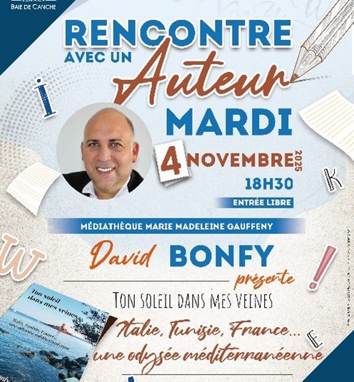 À propos Retour à la liste Un journaliste qui vous fera voyager... Le journaliste du Nord-Pas-de-Calais, originaire du Var, présentera son roman « Ton soleil dans mes veines » : Italie, Tunisie, France, une odyssée méditerranéenne, entre la chaleur du sud et l’authenticité du nord. Informations supplémentaires : Par et à la médiathèque municipale Marie-Madeleine Gauffeny.Renseignements au 03 21 94 29 31.