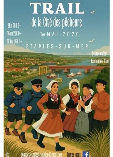 À propos Retour à la liste La toute 1ère édition du "Trail de la Cité des Pêcheurs" ! L’AS Étaples Triathlon est heureuse d’annoncer la création du « Trail de la Cité des Pêcheurs », dont la première édition se tiendra le vendredi 1er mai 2026. Cet événement sportif invite trailers et randonneurs à découvrir la diversité des paysages étaplois, à travers un tracé varié entre nature préservée et passages urbains. La compétition débutera dès 8h30 avec l'épreuve reine du 32 km. Les plus jeunes ne seront pas en reste, puisque des courses dédiées aux catégories "Baby" à "Minimes" seront organisées tout au long de la matinée. Les départs des 16 km et 8 km suivront respectivement à 10h et 10h30, offrant des parcours adaptés à tous les niveaux de pratique. Sur place, une équipe de bénévoles dévoués assurera la logistique, les ravitaillements et une buvette conviviale. Un service de massage sera également proposé aux participants à l'arrivée. Entre performance et plaisir, l'AS Étaples Triathlon vous promet une expérience sportive unique ! Informations supplémentaires : Par l'A.S.E. Triathlon.Renseignements : contact.etaplestriathlon@gmail.com