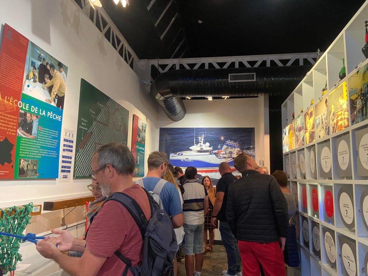 D’abord, on visite Maréis, ensuite on part à pied en groupe sur le port. Un peu comme si on passait de la théorie à la pratique. En chemin, le guide explique ce que sont tous ces bâtiments qui s’élèvent le long du boulevard et qu’on ne connaît finalement pas très bien : les ex-chantiers Leprêtre, la Socarenam, l’aire de carénage, le calvaire des marins, le siège de la coopérative maritime étaploise… On en apprend beaucoup sur l’histoire de la pêche et l’évolution du port.