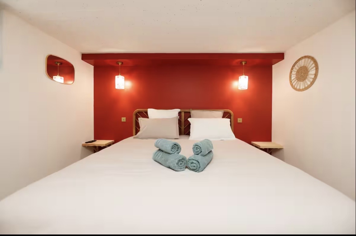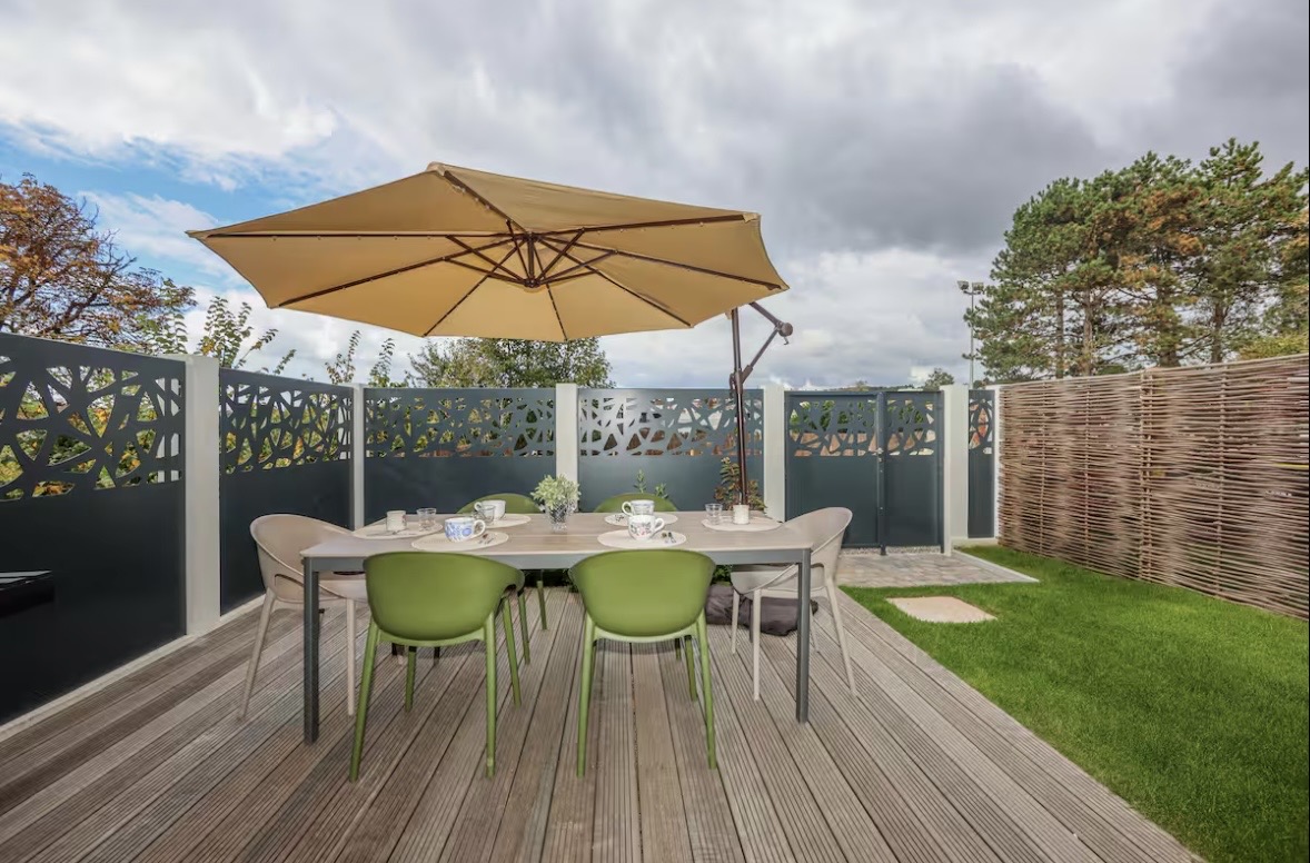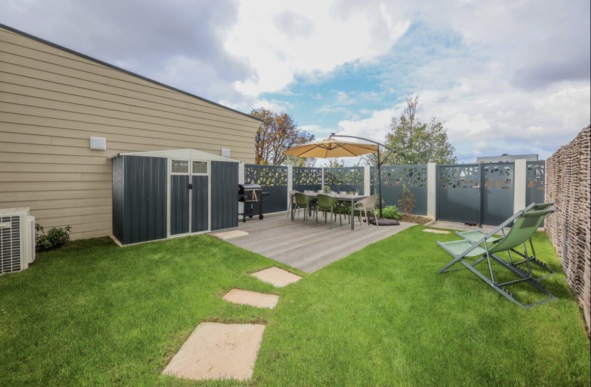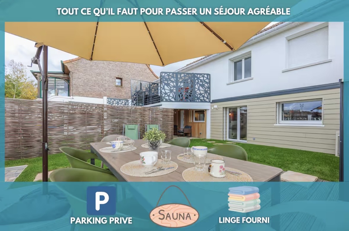 20 À propos Retour à la liste Ce gîte calme et agréable, idéal pour se détendre, offre un jardin et une terrasse privée. Il peut accueillir jusqu'à 6 personnes et dispose de 2 chambres ainsi que d'un canapé-lit. Il se trouve à quelques pas du centre-ville, de la gare et des commerces. Les animaux ne sont pas acceptés dans l'hébergement. Un supplément de 25 euros est également demandé pour la fourniture des draps.